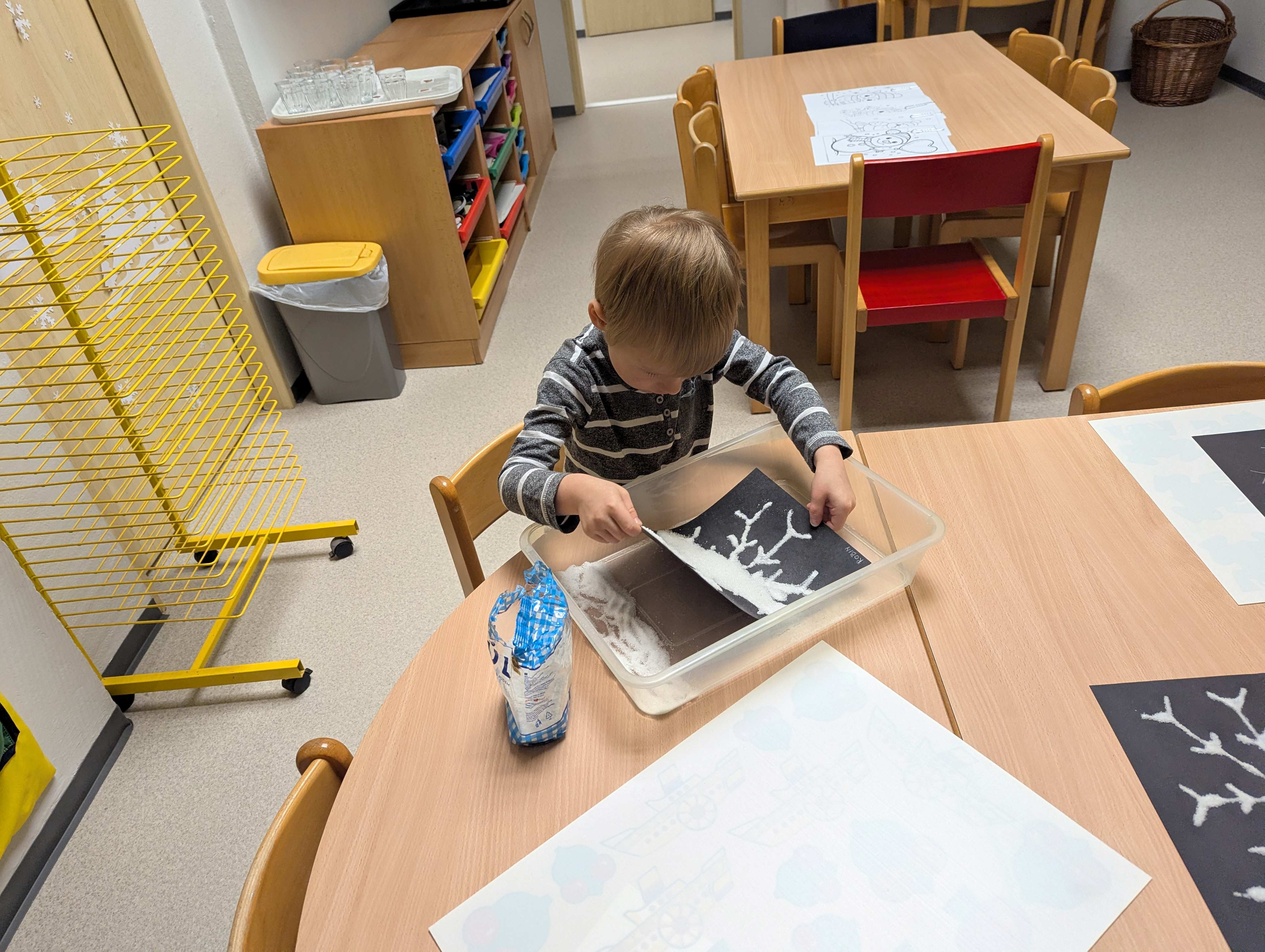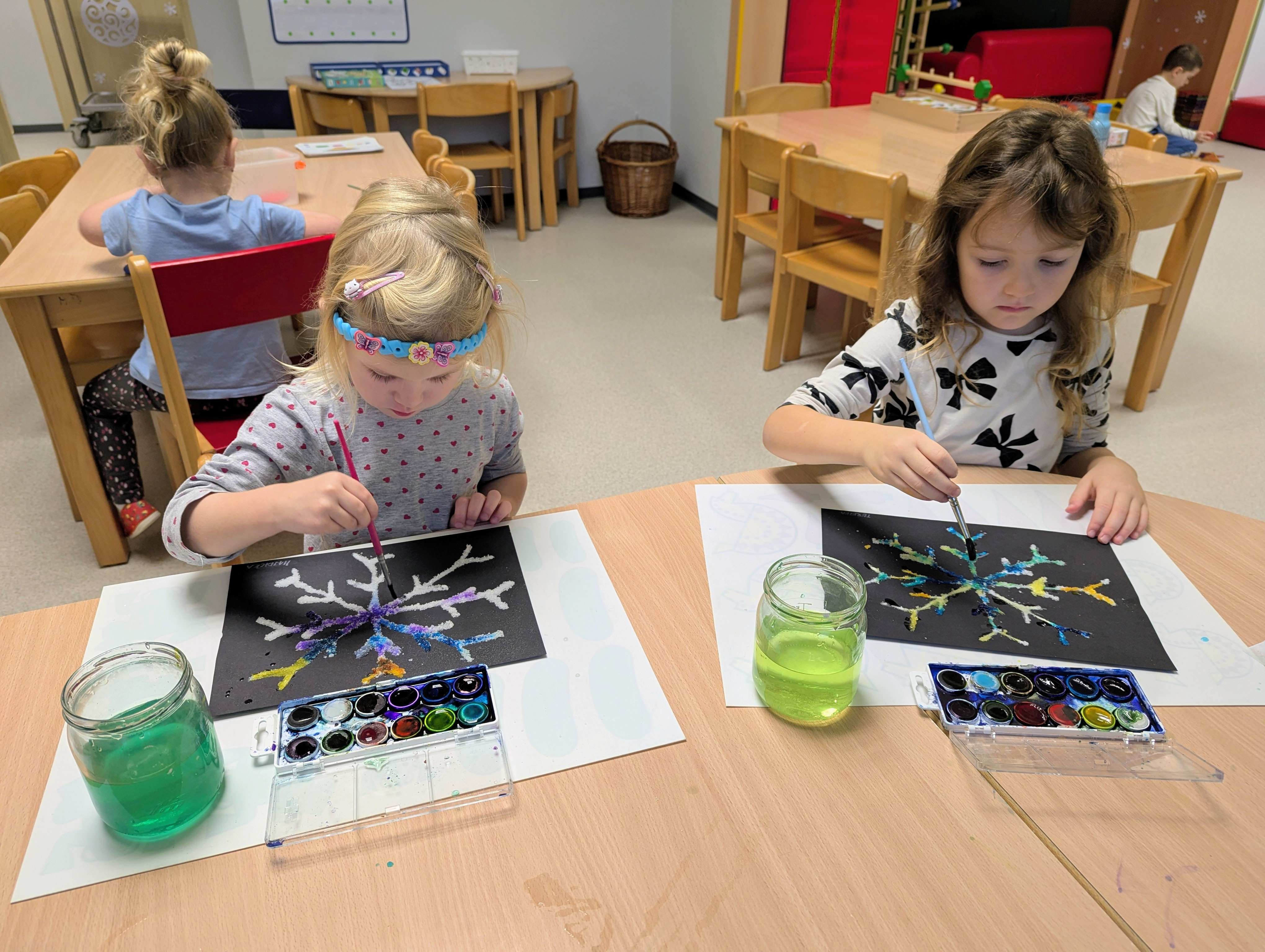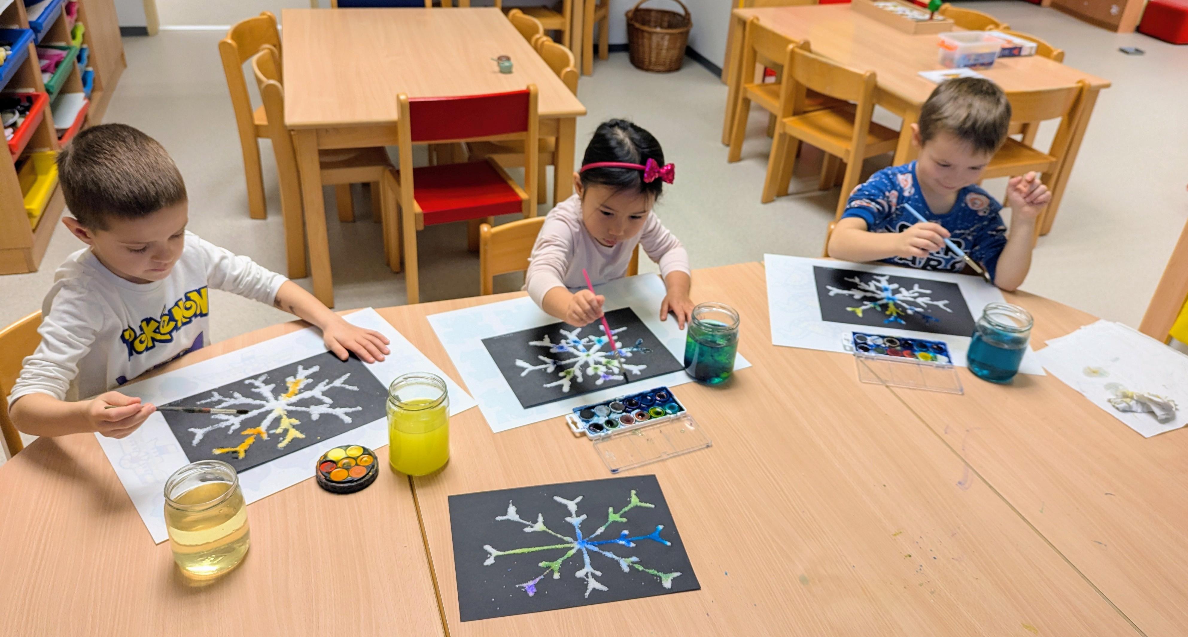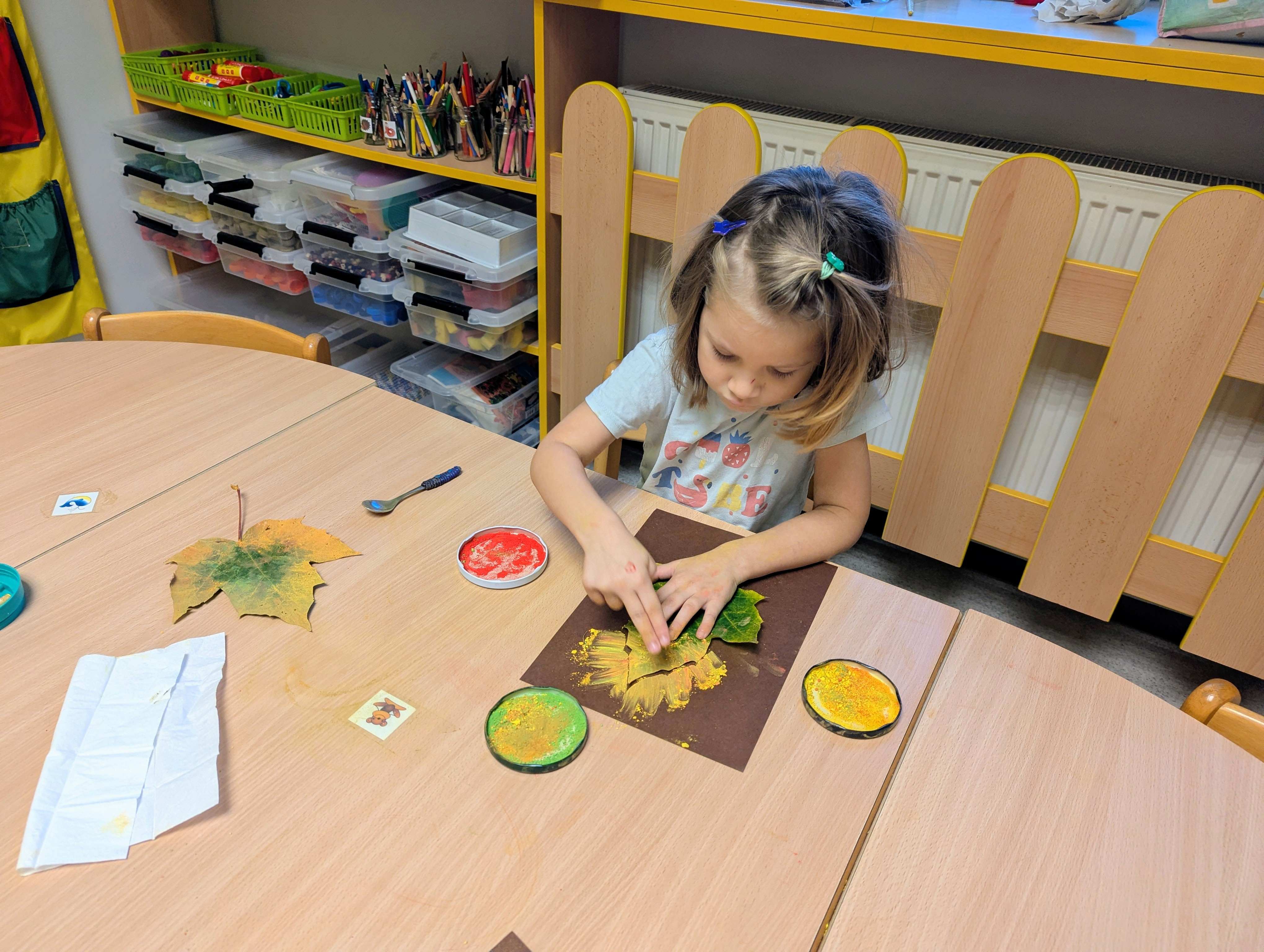Děti si užívají tvoření, ať už ve třídě nebo venku na zahradě. Malují, modelují, kombinují barvy a tvary a nechávají svou fantazii volně létat. Při těchto činnostech se baví, objevují nové nápady a mají radost z vlastních barevných výtvorů.